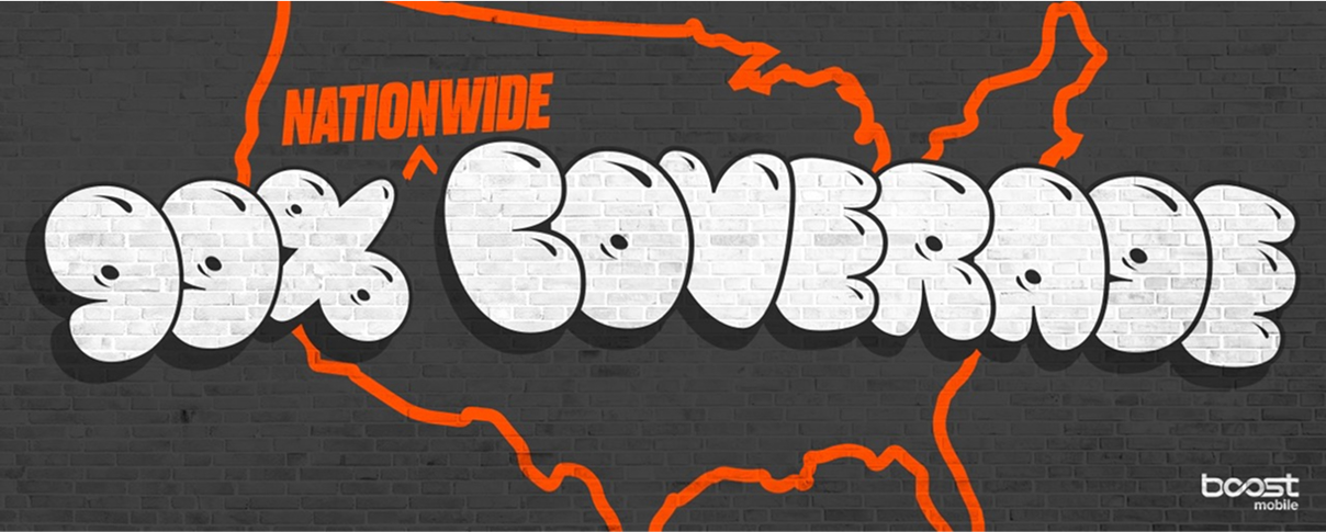 99% nationwide coverage: The Boost Mobile network together with our roaming partners covers 99% of the US population. 5G speeds not available in all areas.
